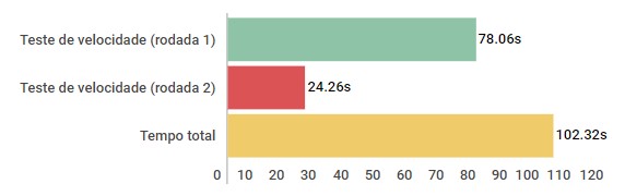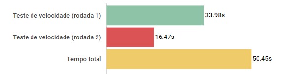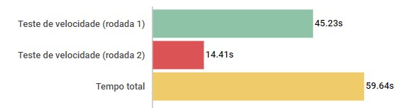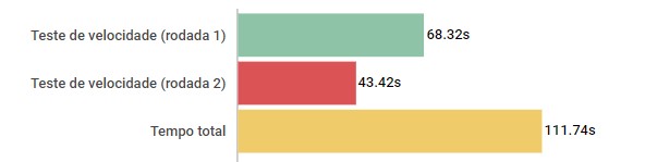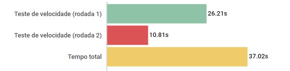 Nos nossos testes, ele conseguiu ficar pouco abaixo dos 59s no teste, uma marca consideravelmente interessante e que mostra a capacidade de entregar um conjunto ágil.