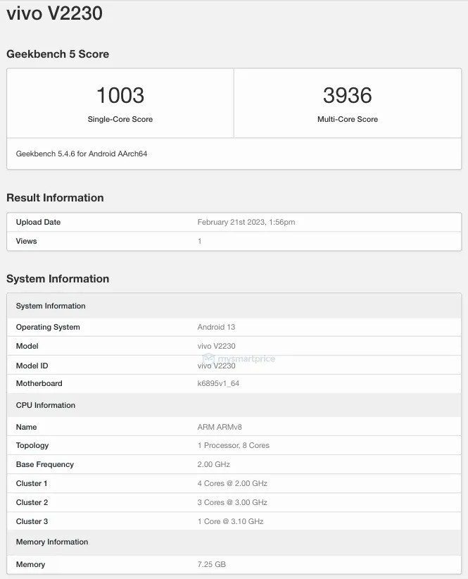 Um pouco antes do lançamento oficial, o vivo V27 Pro 5G foi listado no banco de dados do Geekbench, confirmando algumas de suas especificações.