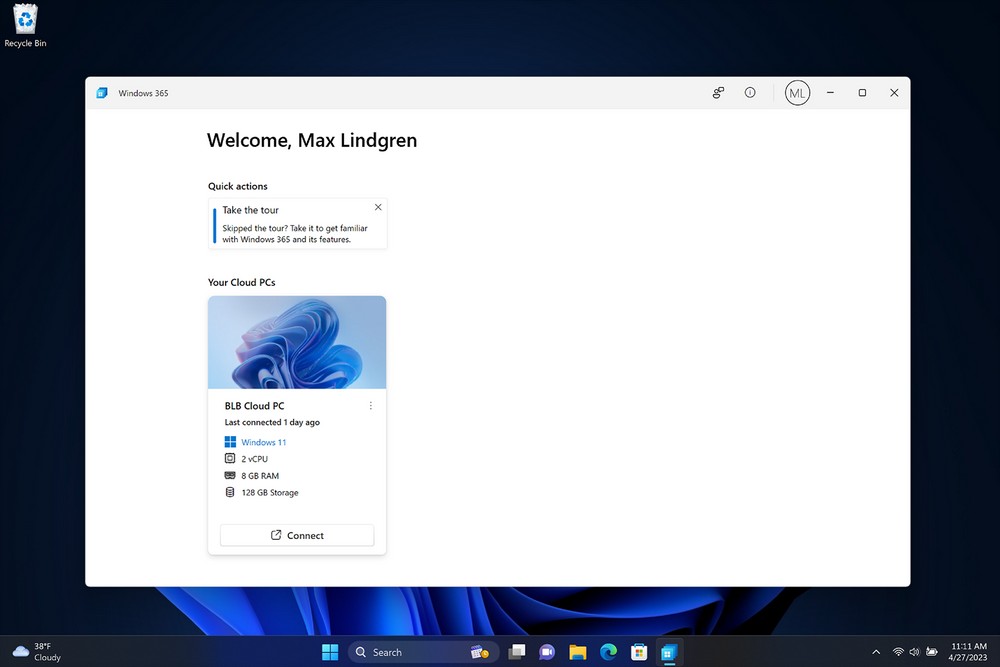 Agora é possível acessar sua área de trabalho baseada em nuvem utilizando o aplicativo do Windows 365, disponível na Microsoft Store. Apresentado em 2021, o serviço permite que profissionais e empresas de vários países — incluindo o Brasil — gerenciem trabalhos com mais organização através de máquinas virtuais por a partir de R$ 153,60/mês.